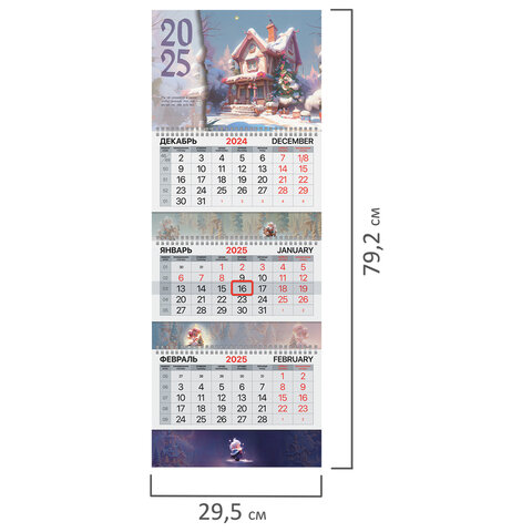 Календарь квартальный на 2025 г., 3 блока, 3 гребня, с бегунком, мелованная бумага, BRAUBERG EXTRA, "Сказка", 116149