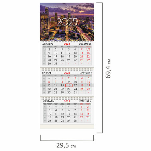 Календарь квартальный на 2025 г., 3 блока, 3 гребня, с бегунком, мелованная бумага, BRAUBERG, "Мегаполис", 116134