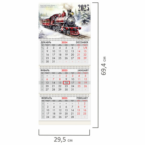 Календарь квартальный на 2025 г., 3 блока, 3 гребня, с бегунком, мелованная бумага, BRAUBERG, "Паровозик", 116142
