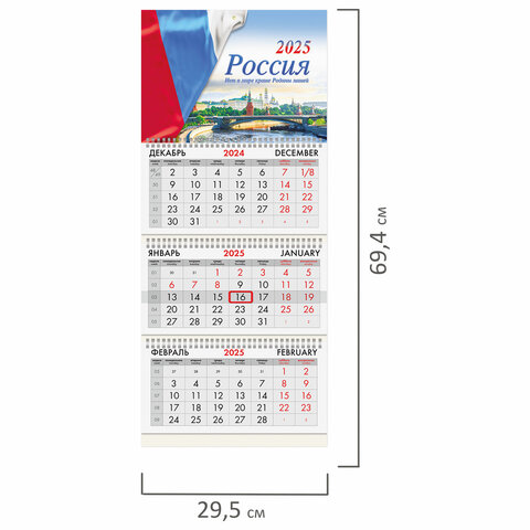 Календарь квартальный на 2025 г., 3 блока, 3 гребня, с бегунком, мелованная бумага, BRAUBERG, "Россия", 116130