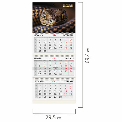 Календарь квартальный на 2025 г., 3 блока, 3 гребня, с бегунком, мелованная бумага, BRAUBERG, "Символ года", 116132