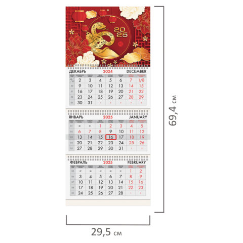 Календарь квартальный на 2025 г., 3 блока, 3 гребня, с бегунком, мелованная бумага, BRAUBERG, "Символ года восток", 116141