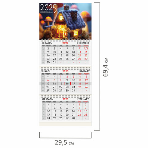 Офисный календарь на 2025 год на 3-х гребнях. Для удобства планирования состоит из 3-х блоков с календарными сетками на три месяца – предыдущего, текущего и последующего. Блок календаря напечатан на мелованной бумаге плотностью 80 г/м2. Подложка изготовлена из мелованного картона плотностью 235 г/м2. Курсор-бегунок выделяет текущую дату. Вертикальное расположение.