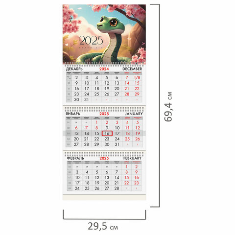 Календарь квартальный на 2025 г., 3 блока, 3 гребня, с бегунком, офсет, BRAUBERG, "Змейка", 116095