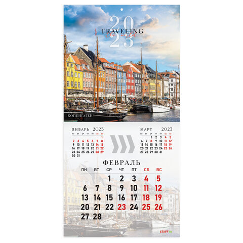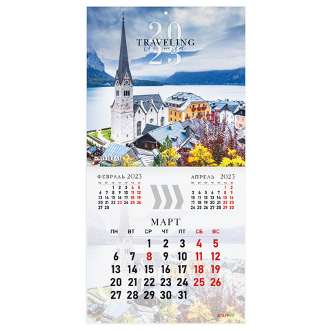 Календарь настенный перекидной 2023 г., 12 листов, 29х29 см, "TRAVELING", STAFF, 114281