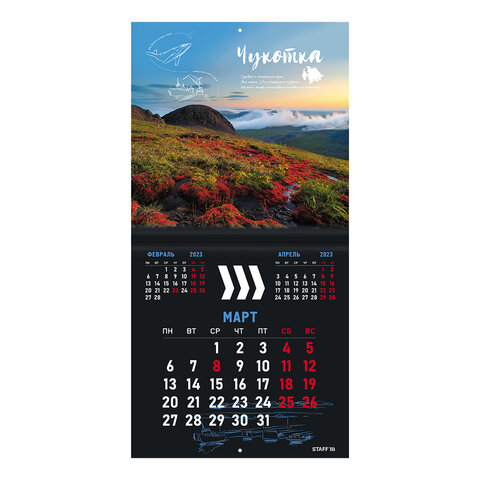 Настенный перекидной календарь STAFF востребован в офисе, организациях, на предприятиях, а также дома. Сочетает функциональность и эстетическую привлекательность.