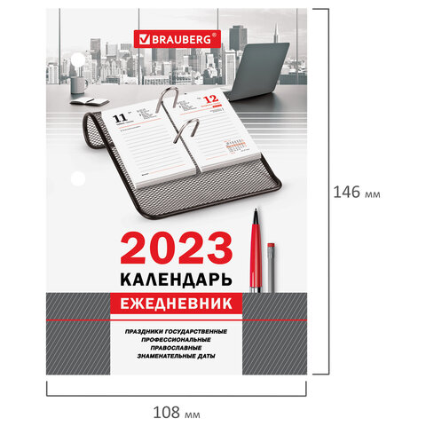 Настольный перекидной календарь 2-х цветный BRAUBERG. Содержит увеличенное количество листов для каждого дня (две страницы в полный разворот); информацию о государственных, профессиональных, международных и религиозных праздниках.