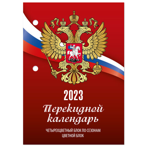 Календарь настольный перекидной 2023 г., 160 л., блок газетный, 1 краска, 4 сезона, STAFF, "РОССИЯ", 114288