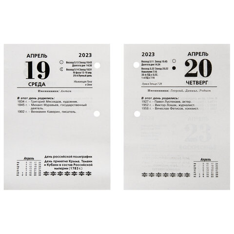Блок календаря на 2023 год напечатан на газетной бумаге плотностью 55 г/м2 в одну краску. На всех листах указана справочная информация: календарь на текущий месяц, часы восхода и захода солнца, долгота дня, лунный календарь, праздники. Имеет офисную тематику. Вертикальное расположение. Размер - 10х14 см. Поставляется в индивидуальной упаковке.