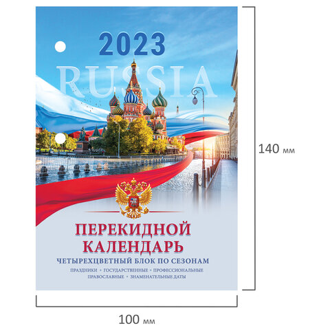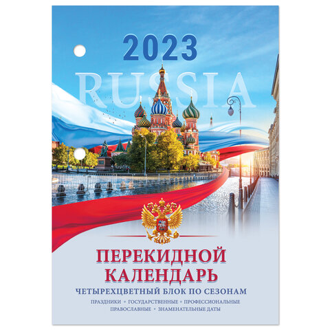 Календарь настольный перекидной 2023 г., 160 л., блок офсет, 4 КРАСКИ, STAFF, "RUSSIA", 114293