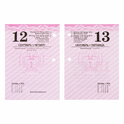 Блок календаря на 2024 год напечатан на офсетной бумаге плотностью 60 г/м2 в две краски с выделением цветом выходных и праздничных дней. Справочная информация на 160 листах: календарь на текущий месяц, часы восхода и захода солнца, долгота дня, лунный календарь, праздники. Имеет офисную тематику.