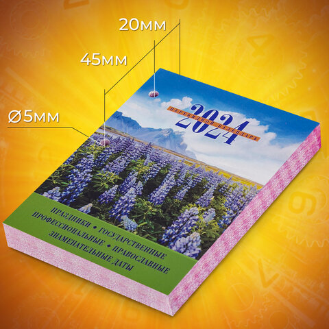 Блок календаря на 2024 год напечатан на офсетной бумаге плотностью 60 г/м2 в две краски с выделением цветом выходных и праздничных дней. Справочная информация на 160 листах: календарь на текущий месяц, часы восхода и захода солнца, долгота дня, лунный календарь, праздники. Имеет природную тематику.