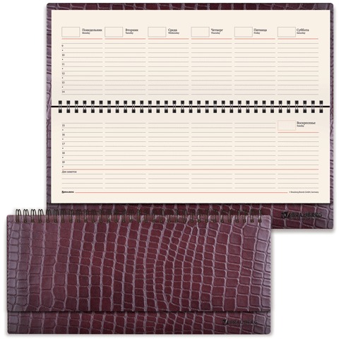 Планинг настольный BRAUBERG недатированный, 305х140 мм, "Alligator", под матовую кожу крок, 60 л., т.-корич, крем. блок, 125880