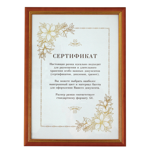Деревянная рамка со стеклом отлично подходит для размещения фотографий, дипломов, сертификатов, грамот, лицензий и других документов формата А4.