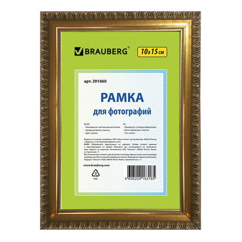Рамка BRAUBERG "HIT5", 10х15 см, пластик, золото (для фотографий), 391060