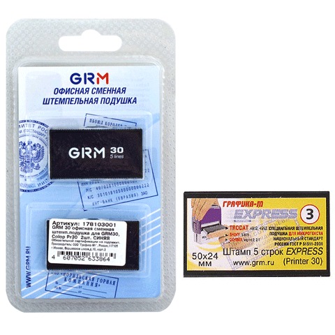 Подушки сменные, комплект 2 шт., для GRM 30, Colop Printer 30, синие, европодвес