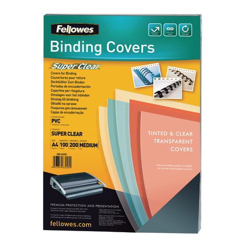 Обложки для переплета FELLOWES, комплект 100 шт., Transparent, А4, пластиковые, 200 мкм, прозрачные, FS-53761