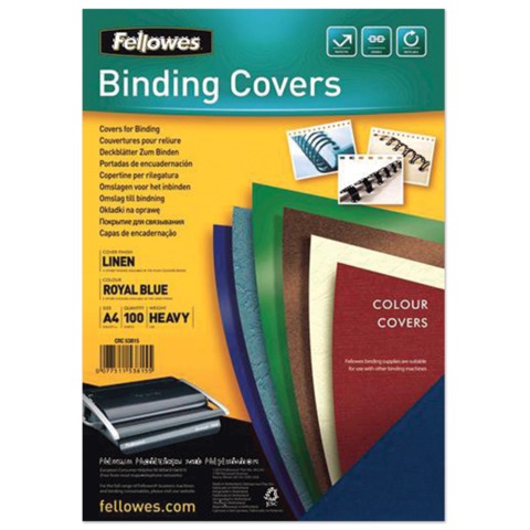 Обложки для переплета FELLOWES, комплект 100 шт., "Лен", A4, картон 250 г/м2, синие, FS-53815