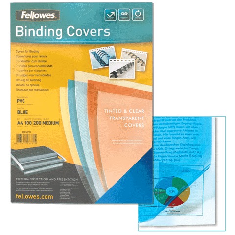 Обложки для переплета FELLOWES, комплект 100 шт., Transparent, А4, пластиковые, 200 мкм, прозрачно-синие, FS-53771