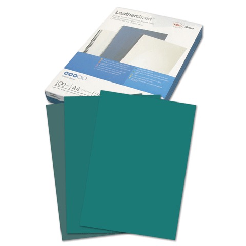 Обложки для переплета GBC (Англия), комплект 100 шт., LeatherGrain (тиснение под кожу), A4, картон, зеленые, CE040045