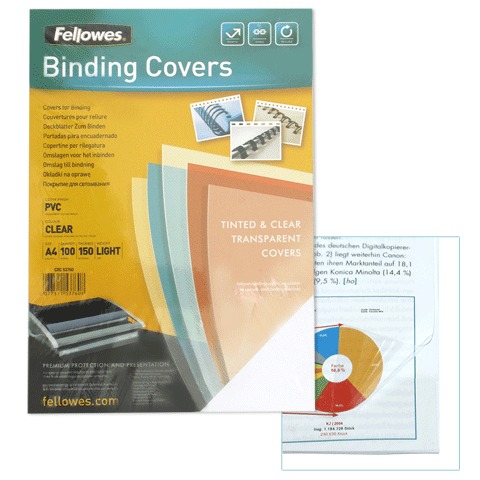 Обложки для переплета FELLOWES, комплект 100 шт., Transparent, А4, пластиковые, 150 мкм, прозрачные, FS-53760