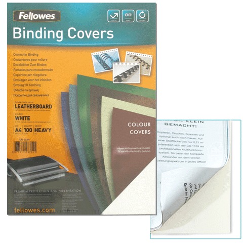 Обложки для переплета FELLOWES, комплект 100 шт., "Delta" (тиснение под кожу), А4, картон 250 г/м2, белые, FS-53701
