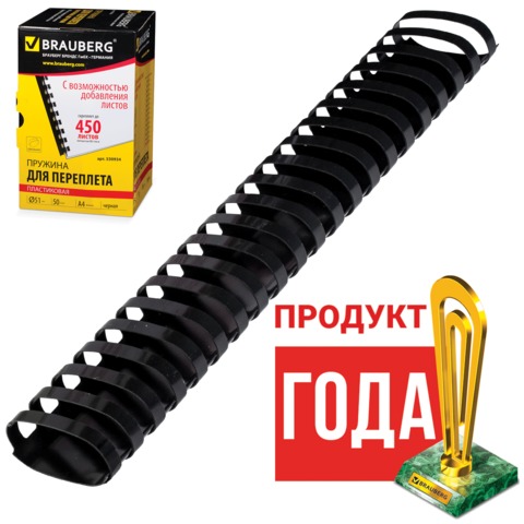 Пружины пластиковые для переплета BRAUBERG, комплект 50 шт., 51 мм, для сшивания 411-450 листов, белые, 530935