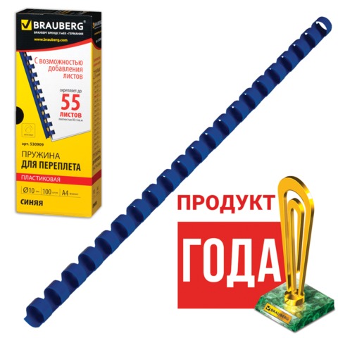 Пружины пластиковые для переплета BRAUBERG, комплект 100 шт., 14 мм, для сшивания 81-100 листов, синие, 530919