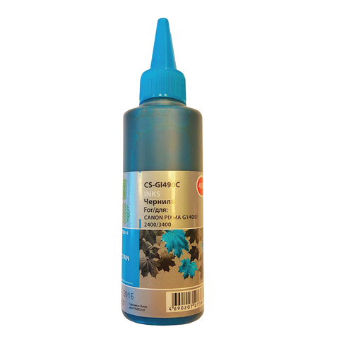 Чернила CANON (GI-490С) для СНПЧ Pixma G1400\G2400\G3400, голубые, ресурс 7000 стр., оригинальные, 0664C001