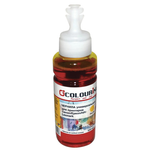 Чернила CANON / EPSON / HP / LEXMARK универсальные, желтый, 0,1 л, водные, COLOURING, СОВМЕСТИМЫЕ, 5180000093