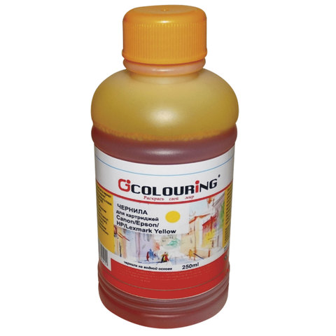 Чернила CANON / EPSON / HP / LEXMARK универсальные, желтый, 0,25 л, водные, COLOURING, СОВМЕСТИМЫЕ, 5180000094
