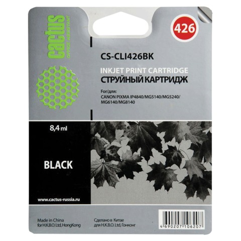 Картридж струйный CANON (CLI-426Bk) Pixma MG5140/MG5240/MG6140/MG8140, черный, CACTUS совместимый, CS-CLI426BK
