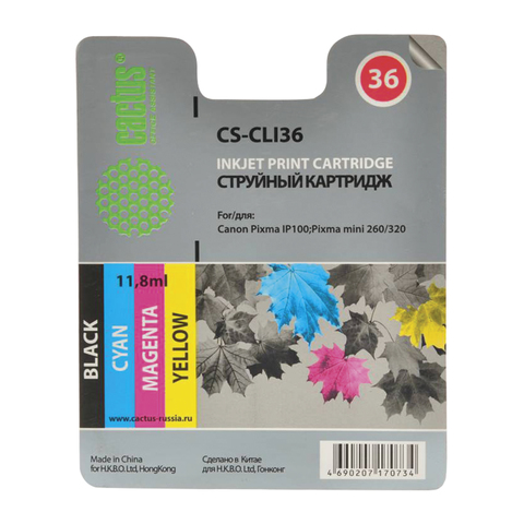 Картридж струйный CANON (CLI-36) PIXMA iP100, цветной ресурс 250 стр., CACTUS, совместимый, CS-CLI36