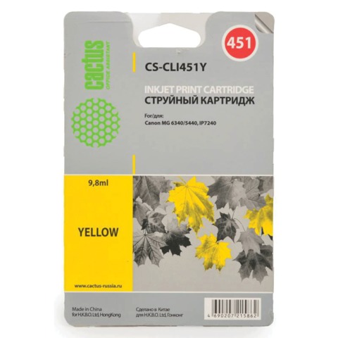 Картридж струйный CANON (CLI-451Y) Pixma iP7240, желтый, CACTUS совместимый, CS-CLI451Y