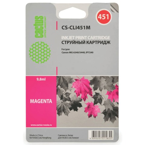 Картридж струйный CANON (CLI-451M) Pixma iP7240, пурпурный, CACTUS совместимый, CS-CLI451M