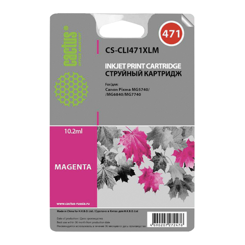Картридж струйный CANON (CLI-471МXL) PIXMA MG5740/6840/7740, пурпурный, ресурс 2000 стр., CACTUS, совместимый, CS-CLI471XLM