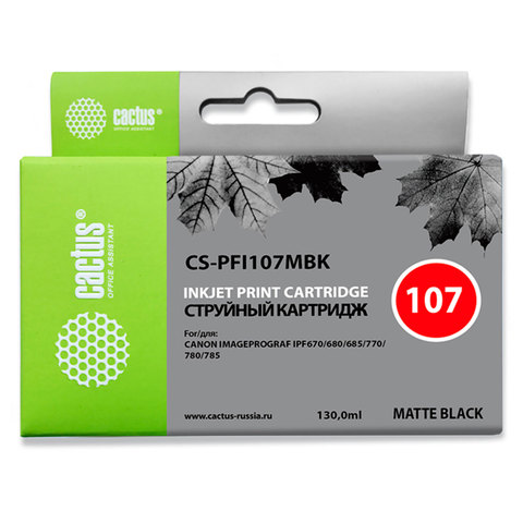 Картридж струйный CANON (PFI-107MBK) PF680/685/780/785, матовый черный, 130 мл, CACTUS совместимый, CS-PFI107MBK