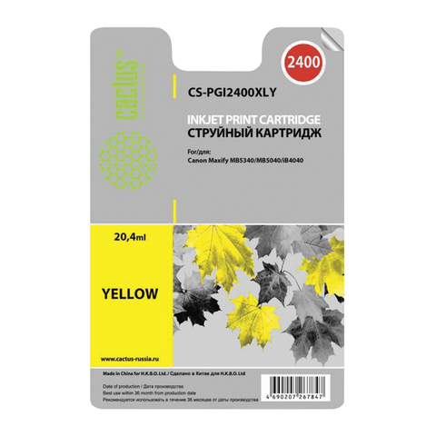 Картридж струйный CANON (PGI-2400XLY) iB4040/MB5040/MB5340, желтый, ресурс 1500 стр., CACTUS совместимый, CS-PGI2400XLY