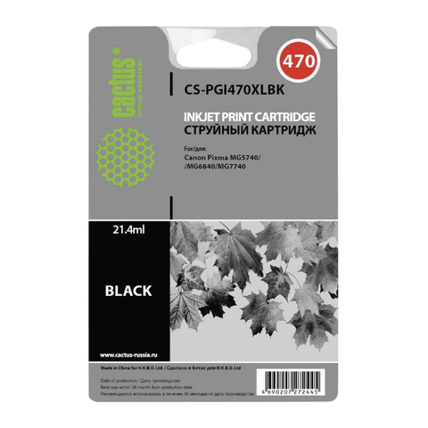Картридж струйный CANON (PGI-470PGBKXL) PIXMA MG5740/6840/7740, черный пигментный, ресурс 500 стр., CACTUS, совместимый, CS-PGI470XLBK