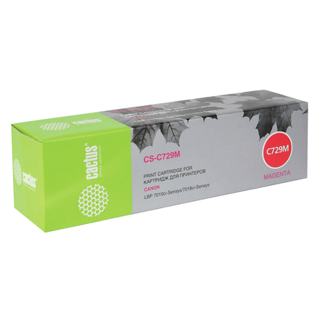 Картридж лазерный CANON (729M) LBP7010C/7018C, пурпурный, ресурс 1000 стр., CACTUS, совместимый, CS-C729M