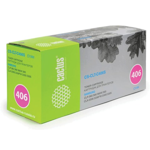 Картридж лазерный SAMSUNG (CLT-C406S) CLP-365/365W и другие, голубой, ресурс 1000 стр., CACTUS совместимый, CS-CLT-C406S