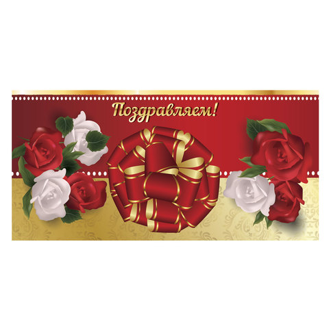 Конверт для денег "Поздравляем", 166х82 мм, выборочный лак, "золотой", BRAUBERG, 128695