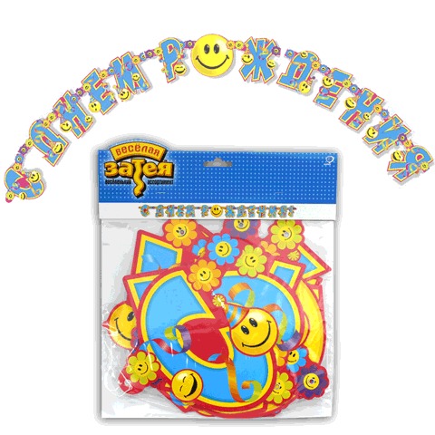 Праздничная гирлянда-буквы "С ДНЕМ РОЖДЕНИЯ" (улыбки), длина 225 см, в упаковке с европодвесом, 1505-0045