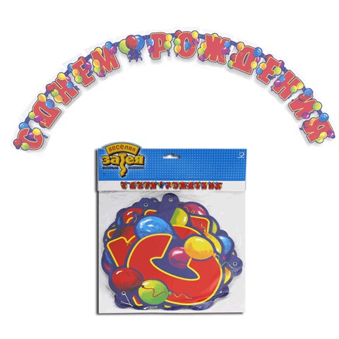 Праздничная гирлянда-буквы "С ДНЕМ РОЖДЕНИЯ" (шары), длина 240 см, в упаковке с европодвесом, 1505-0046