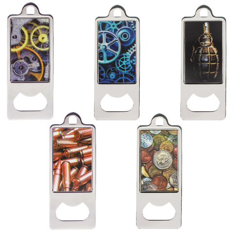 Открывалка металлическая с объемным 3D-изображением. 5 видов дизайнов (ассорти). Можно использовать также в качестве оригинального брелка для ключей.