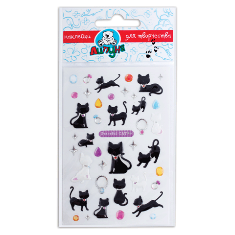 Наклейки ЛИПУНЯ "Большие гелевые. Кошки", с европодвесом, bES004