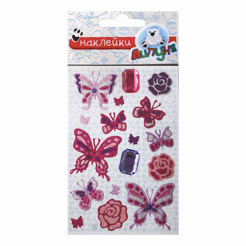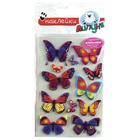 Наклейки ЛИПУНЯ "Блестящие бабочки", с европодвесом, JGS008