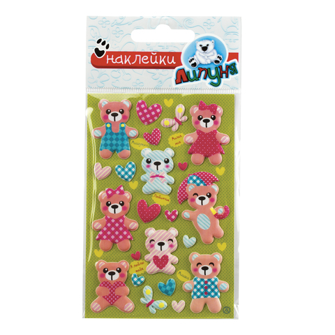 Наклейки ЛИПУНЯ "Зефирные мишки", с европодвесом, MMS030