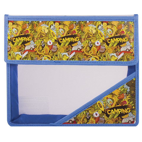 Папка для тетрадей "Кемпинг" предназначена для детей младших классов. Она украшена изображением и изготовлена из прочного пластика, что позволяет хранить тетради без замятий.