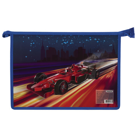 Папка для тетрадей ПИФАГОР, А4, картон, цветная печать, молния сверху, для мальчиков, "Хайвэй", 227127